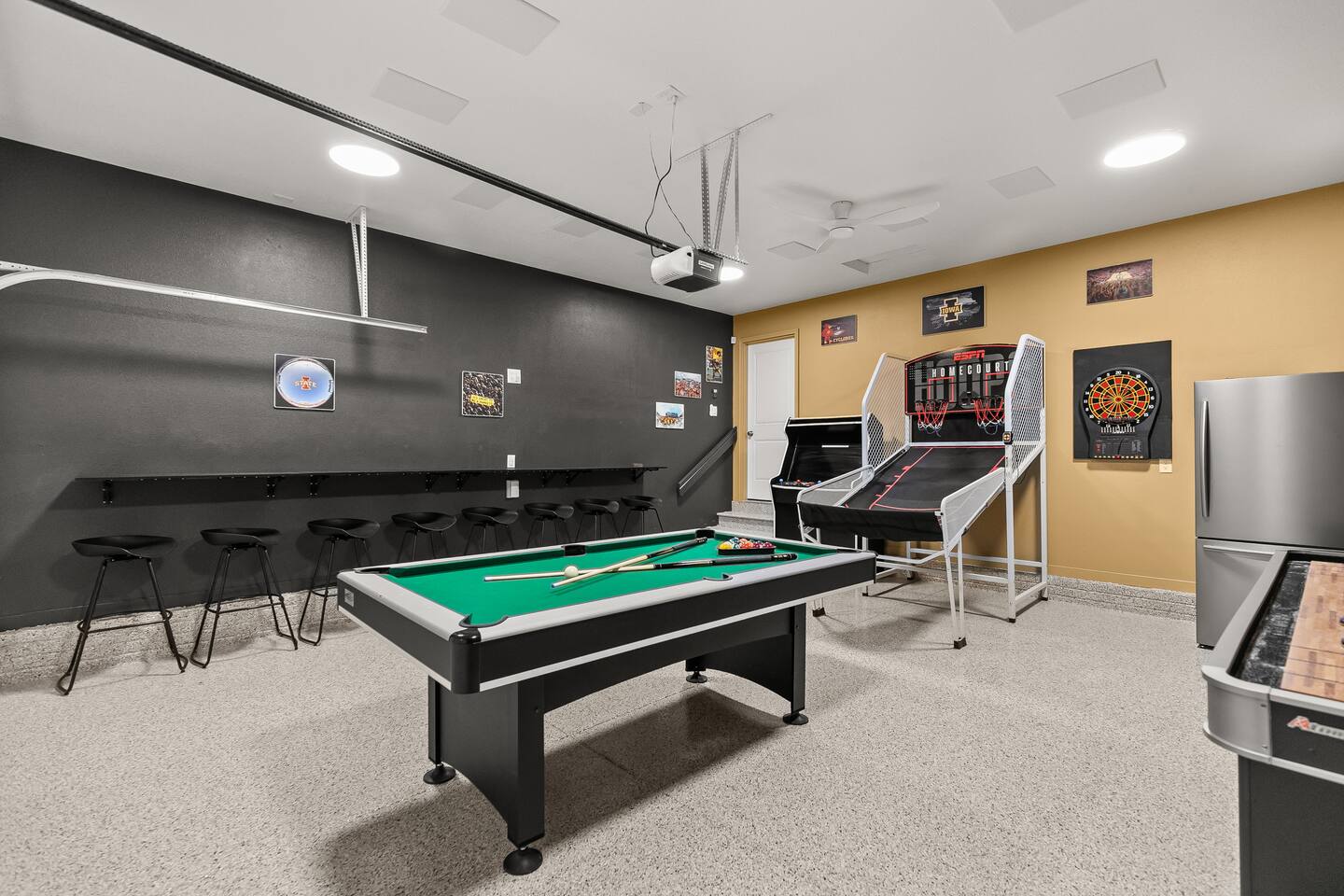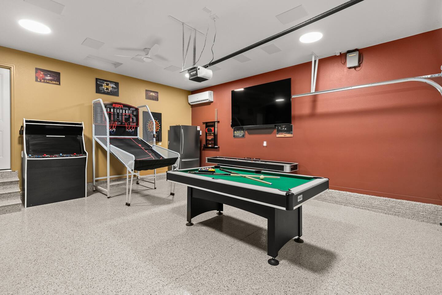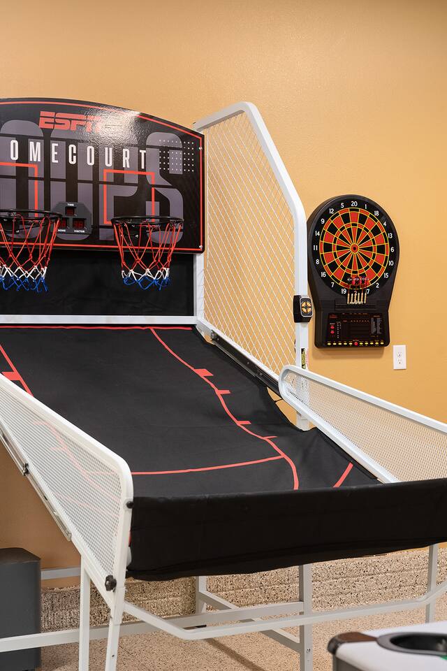 HOT TUB & GAME ROOM! Stylish, unique, and family-friendly home. Fully stocked kitchen for your use during your stay will leave you wanting for nothing. Lots of areas for everyone including a giant TV viewing area for sports or movies, large patio, and more. Keep the competition friendly while enjoying the dedicated sporting area in the garage. Plenty of room for everyone to enjoy time at the pool table, arcade game, board games, and basketball. Come and enjoy House Divided!