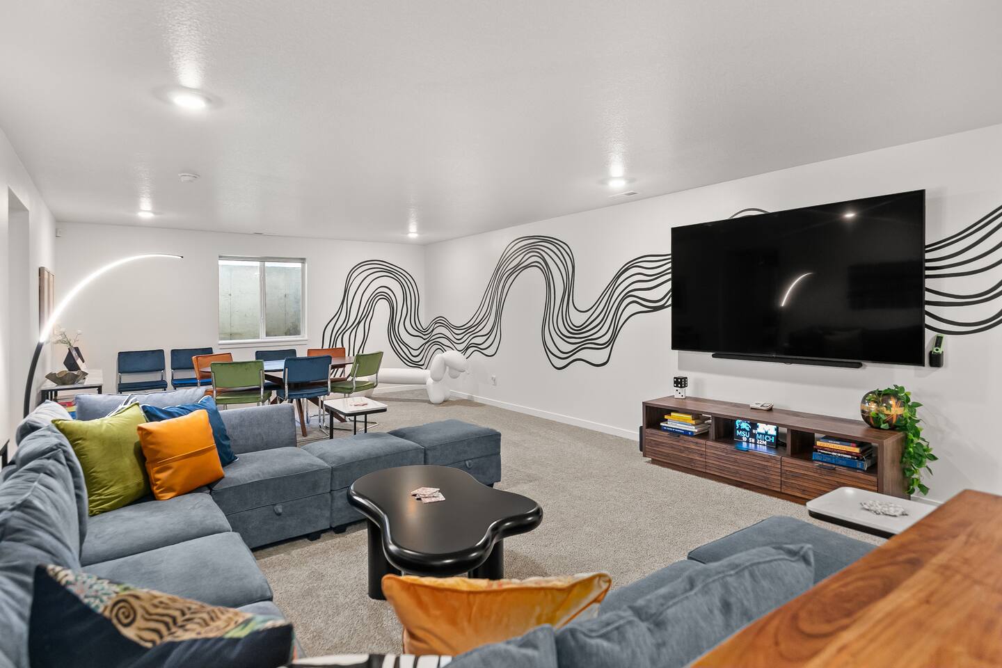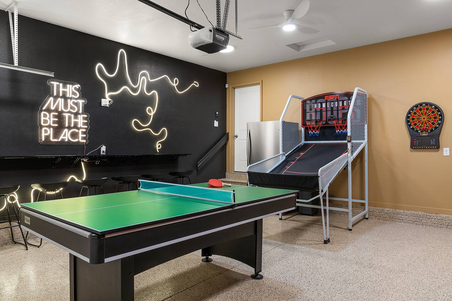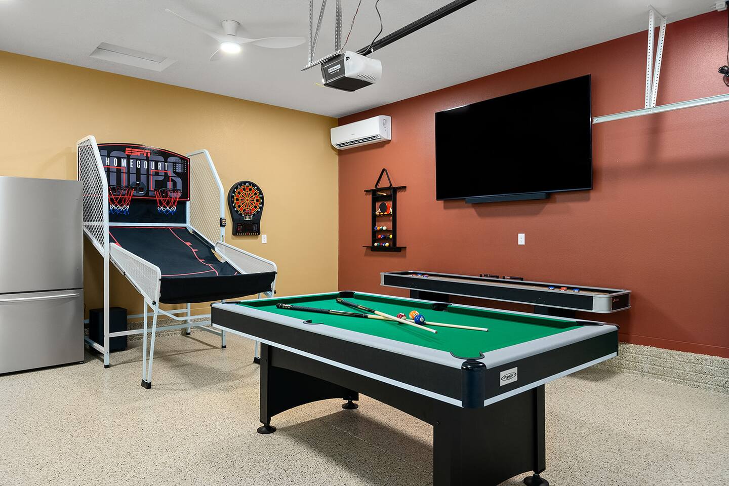 HOT TUB & GAME ROOM! Stylish, unique, and family-friendly home. Fully stocked kitchen for your use during your stay will leave you wanting for nothing. Lots of areas for everyone including a giant TV viewing area for sports or movies, large patio, and more. Keep the competition friendly while enjoying the dedicated sporting area in the garage. Plenty of room for everyone to enjoy time at the pool table, arcade game, board games, and basketball. Come and enjoy House Divided!