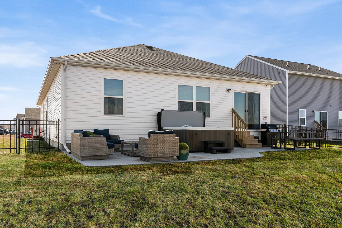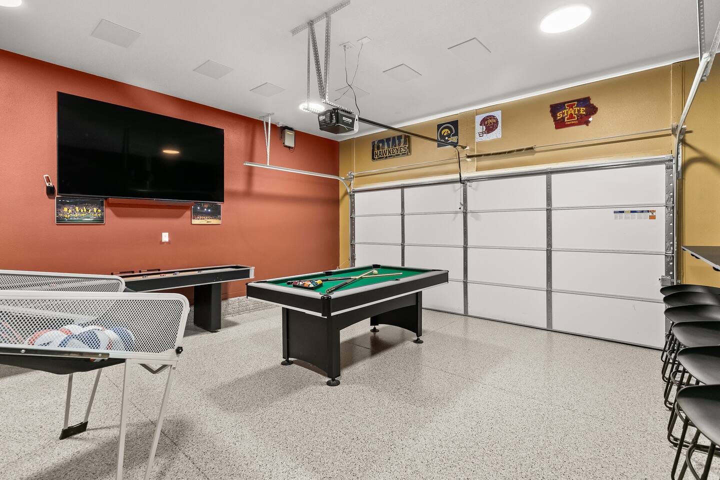 Ready for your staycation! So many options in this beautiful brand new 5 bedroom & 3 bath home that offers 2 king, 2 queen, and 2 twin beds. Entertainment options include shuffle board, pool, ping pong, basketball, and plenty of tv/games viewing options. Fully stocked kitchen that will leave you wanting for nothing. Lovingly decorated spaces for your entire group add to the allure of this home. Close to lots of amenities and easy travel to all things the metro and Ames.